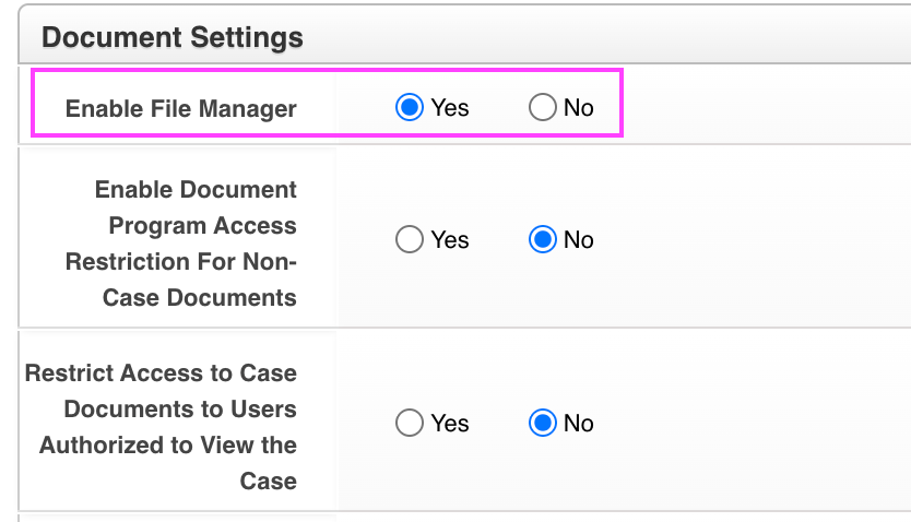 We are previewing a replacement for Legal Server’s legacy file "folder tree" view of documents. Site administrators control whether the File Manager is available for users.