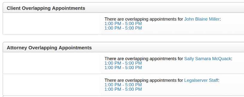 Useful on a Clinic Event profile page to show overlapping clients and/or attorneys/users.