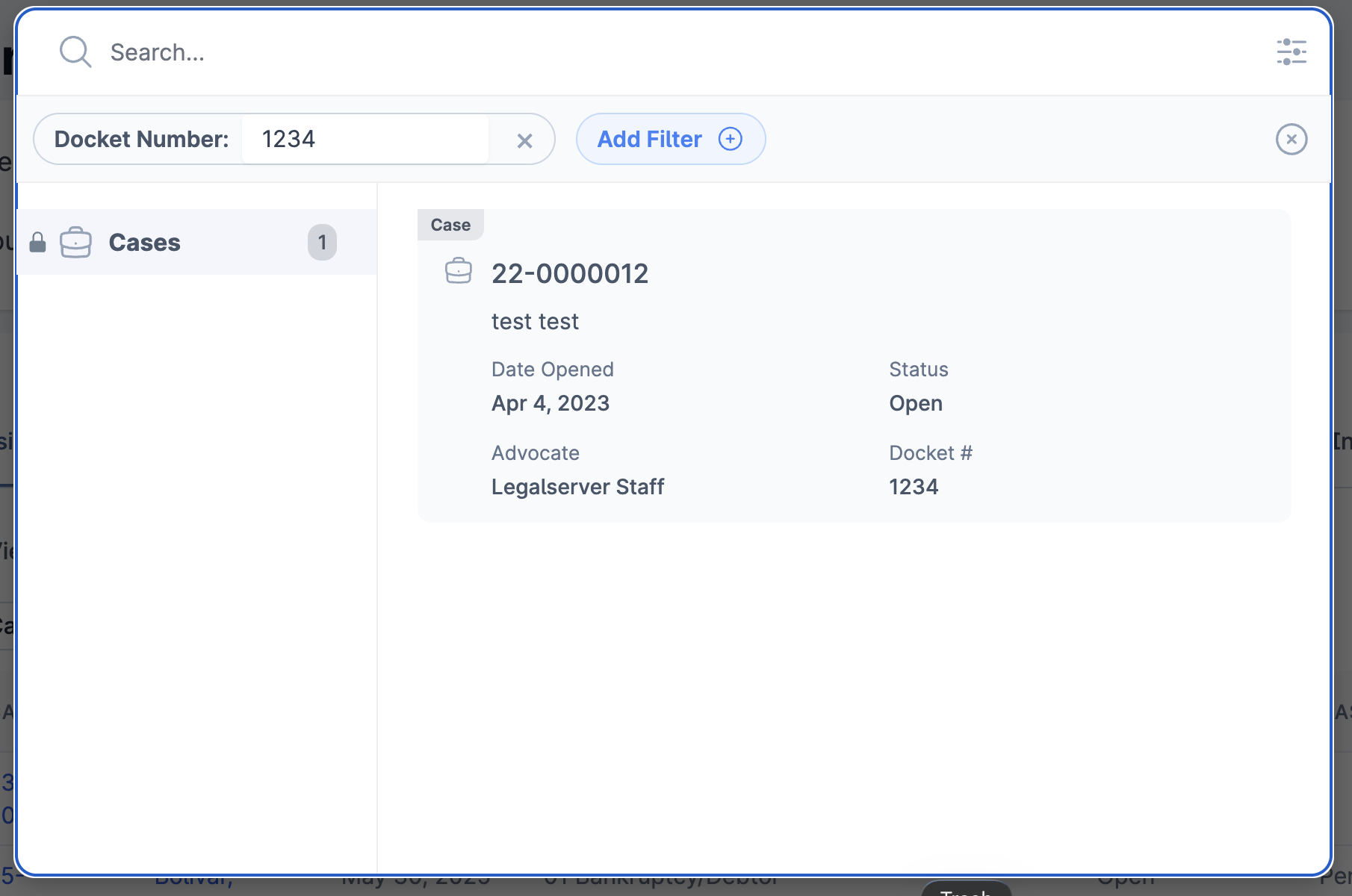 LS5 offers powerful search capabilities designed to help you quickly locate the information you need, whether you're looking for a specific case, contact, document, or any other record.